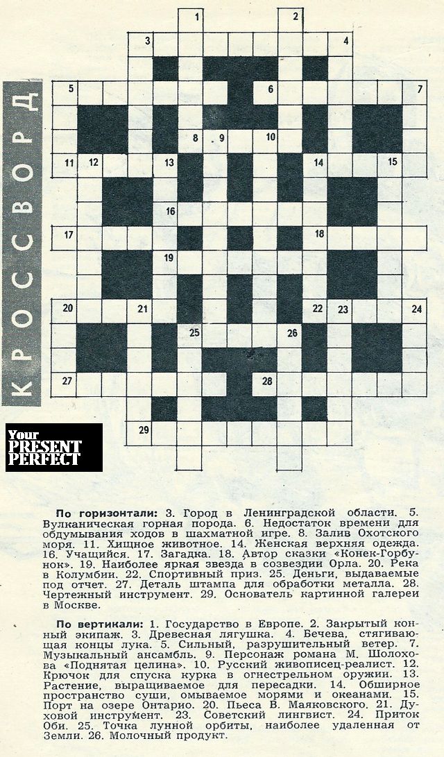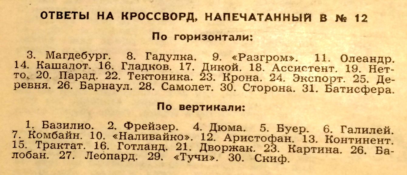 На этой станице мы начинаем публиковать кроссворды с ответами, которые были напечатаны в старых советских журналах. Если Вы ищете какой-нибудь конкретный кроссворд из старых журналов или заинтересованы в кроссвордах за определенный год (период), напишите нам об этом, и мы постараемся их найти в наших каталогах.